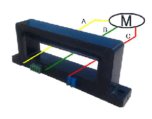 產(chǎn)品接線示意圖(注:以測量三相電機(jī)負(fù)載的零序電流為例.)